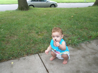 So my daughter is quite stubborn and doesn't want to walk. She can but she chooses not to! She gets around faster crawling and I guess it is safer on the floor. Well I am anxious to get her to walk so I have been trying different things. We bought her a big pink ball and she likes to carry it around and bring it to you. Since it is so big she has to walk to carry it! A couple of weeks ago Baby Half Off.com had Itzy Bitzy squeaker shoes for the sale of the day so I thought I would give those a try to see if they motivated her anymore. At first she wasn't so sure about them but as soon as she realized she could make them squeak she was much more fond of them. Tuesday night she was walking all over the place even after I took them off! I just hope she keeps up this trend! Here are some pictures and a video of her walking with her squeaker shoes. Well nevermind about the video because I can't get blogger to upload it and I have been trying for days. There are a few pictures of Mattie though.